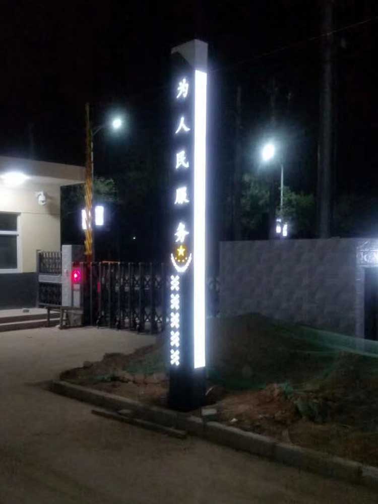 該項目是的燈具外觀造型,統一由我公司設計師設計完成,結合公安局特色,設計出適合的燈具造型,在燈具上設計有“為人民服務”字樣,還有加了5個五角星。外部采用激光切割技術,將整體的造型雕刻出來,內部安裝亞克力白板嵌套而成。