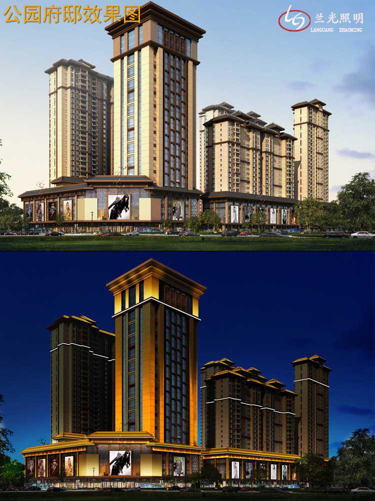 簡介—— 西安公園府邸小區樓體亮化設計, 大興公園府邸項目總共分2期;總共9棟樓;我們對于樓體的設計主要是采用主辦公樓洗墻燈打亮樓層墻面,頂部投光燈整體打亮為效果基礎,是樓體整體金碧輝煌,大氣感十足,溫暖而莊重。
