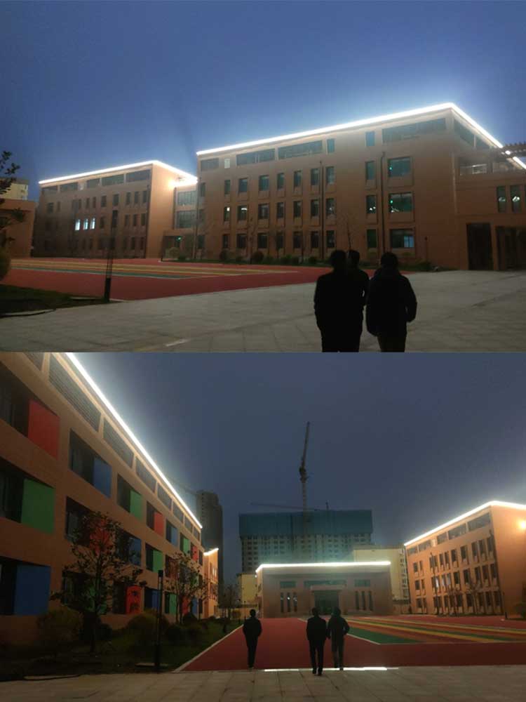 簡介—— 西安市兒童福利院亮化工程,主要是采用線條燈對樓體的頂部和側面輪廓進行勾勒,主樓安裝十二生肖發光造型,側墻采用圖案燈進行動畫投影,打出絢麗多彩的動畫卡通人物,與建筑的實用完整結合。