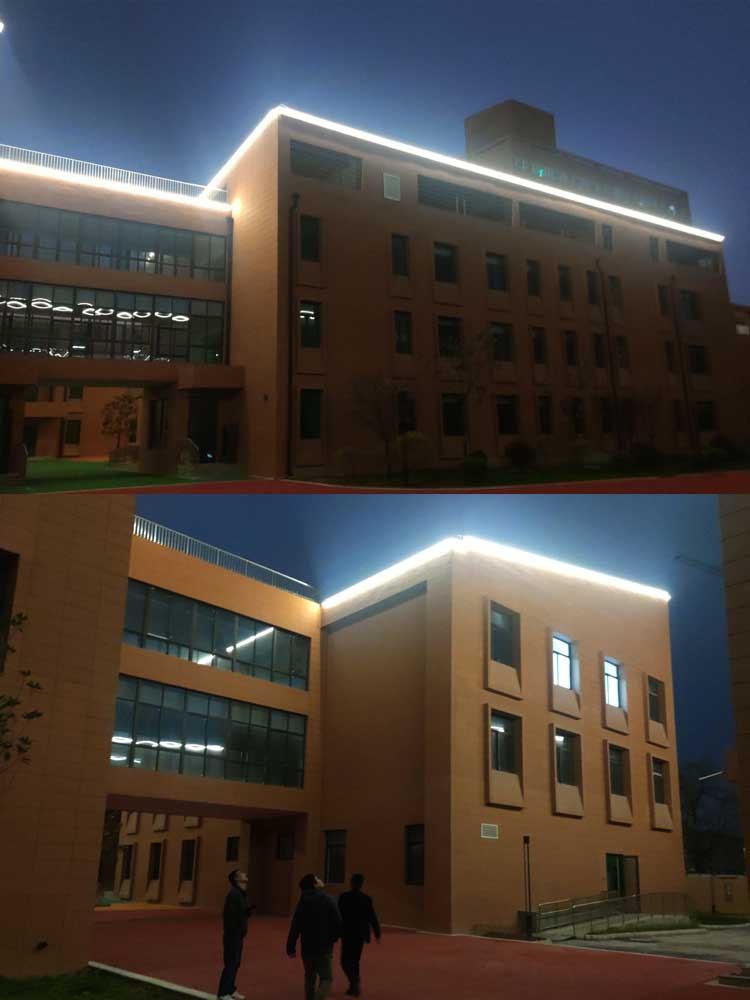西安市兒童福利院亮化工程,主要是采用線條燈對樓體的頂部和側面輪廓進行勾勒,主樓安裝十二生肖發光造型,側墻采用圖案燈進行動畫投影,打出絢麗多彩的動畫卡通人物,與建筑的實用完整結合。