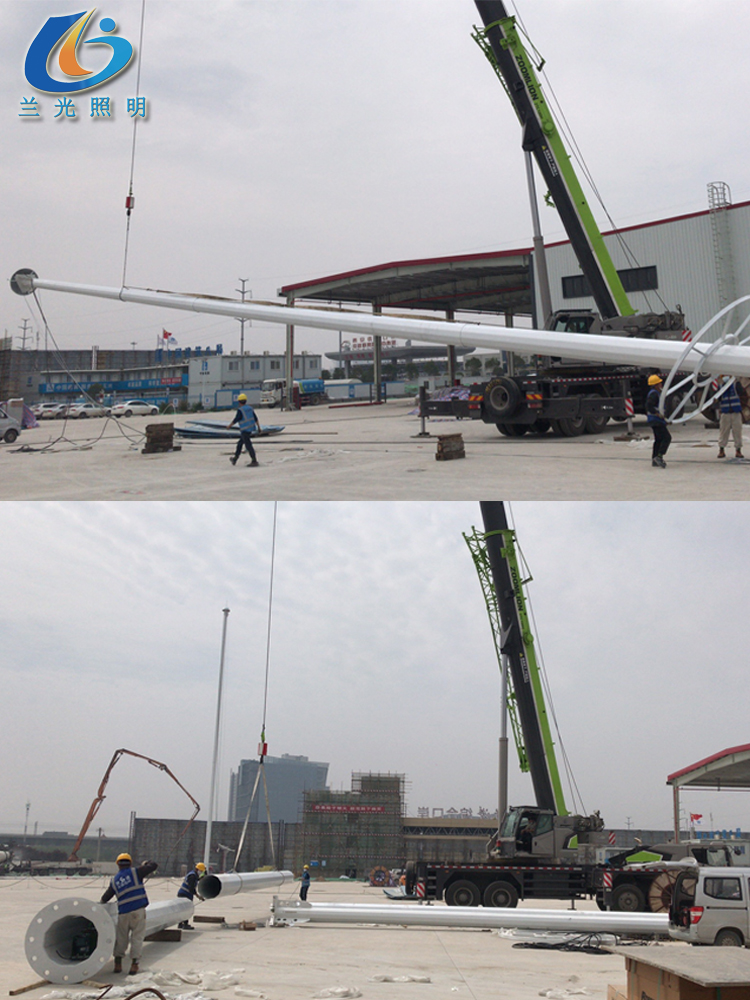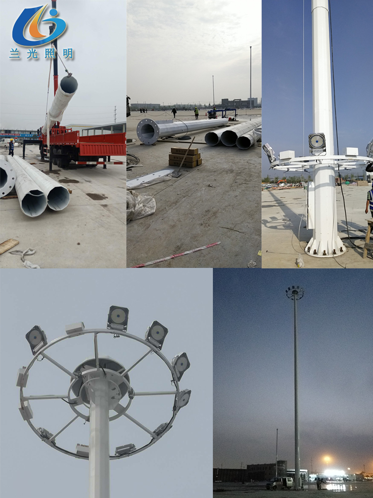 3.高桿燈頂部配設避雷針,所有連接部件為不銹鋼螺栓負載能力1000公斤。